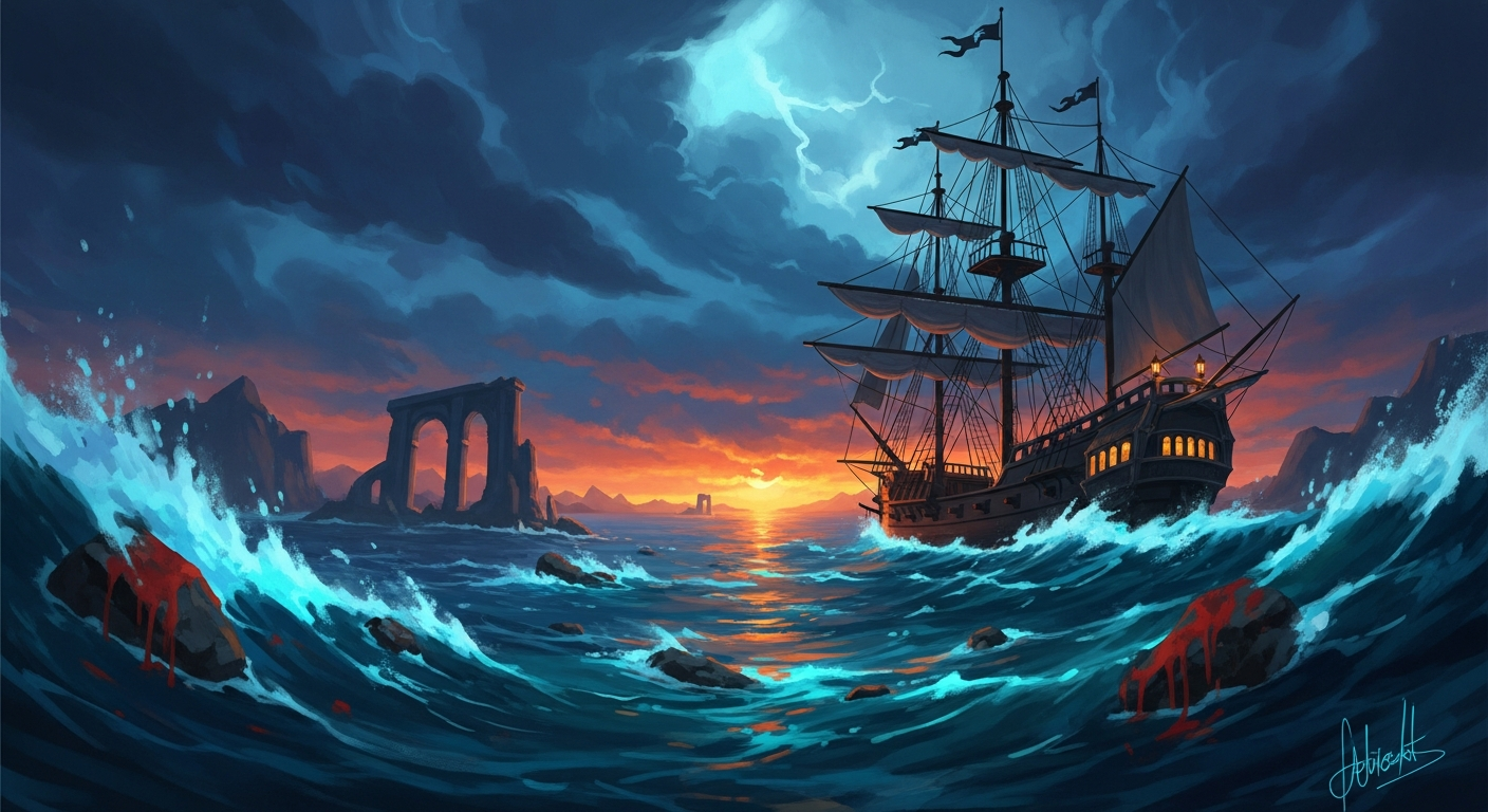 The Shattered Isles are in turmoil. Naia and Elder Coralia confront an elemental cataclysm at the Crimson Reef, while Master Lyra in Aerthos pursues vengeance and protects ancient knowledge. 'Bones' Rattigan expands his smuggling empire amidst Admiral Thorne's blockade. A new, tyrannical power has emerged, having claimed the Navigator's Heart and bound it with Abyssal energy. This figure has just unleashed a colossal whirlpool, threatening to destroy Admiral Thorne's fleet and assert absolute control. Now, this new ruler has broadcast their dominance across all the Isles, demanding immediate fealty from key figures like Captain Vanya, Captain Blackfin Borin, Naia, Elder Coralia, and Master Lyra, threatening those who refuse with the same fate as Thorne's fleet. The Isles face elemental instability, political intrigue, and the terrifying rise of this new, demanding force.